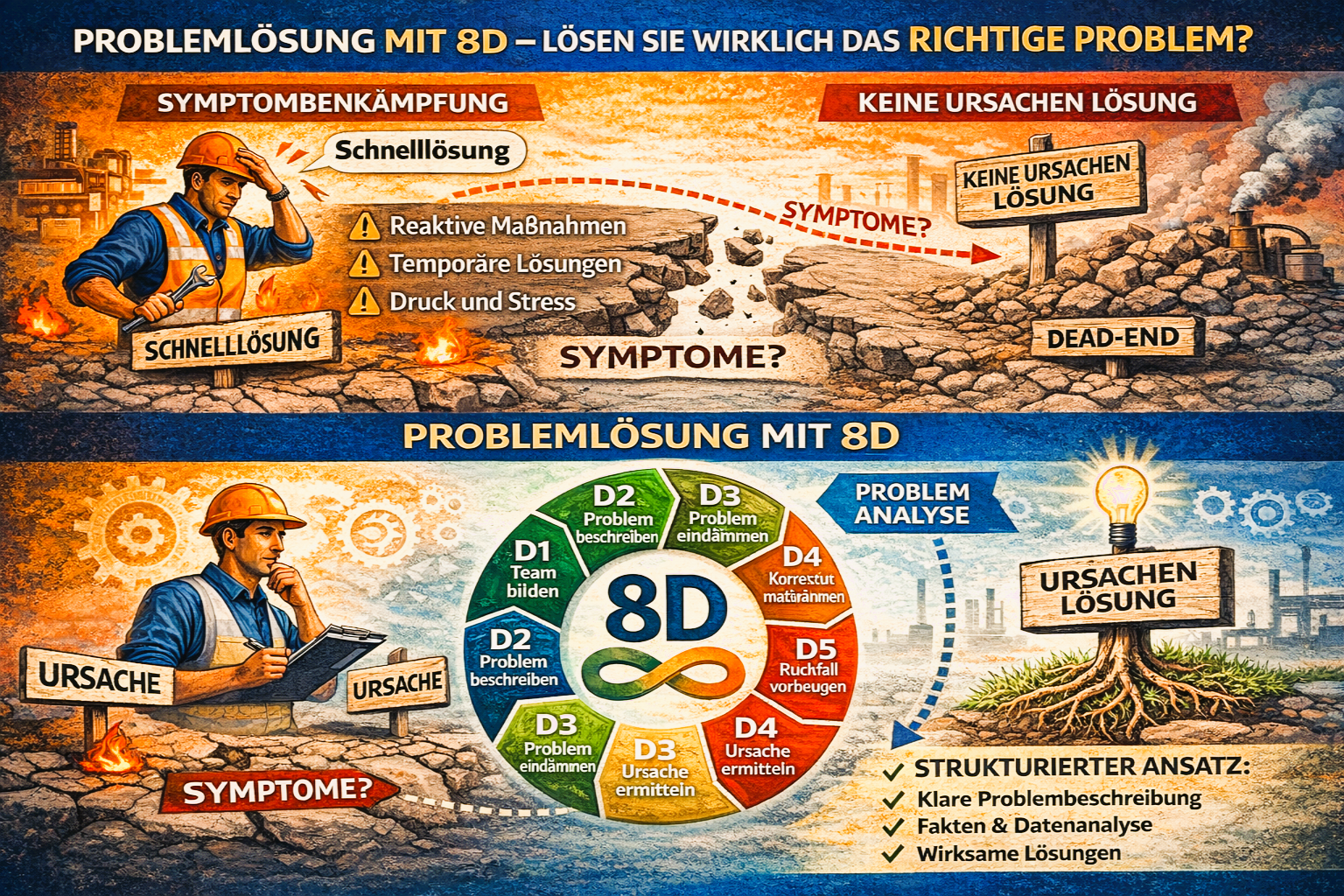 In vielen Unternehmen – insbesondere in Entwicklung und Produktion – wird auf Probleme häufig sehr schnell reagiert: Maßnahmen werden definiert.Aktionen werden umgesetzt.Der Druck steigt, das Problem möglichst schnell zu „lösen“. Doch genau hier liegt ein entscheidender Fehler: Oft werden Symptome bekämpft – nicht die eigentlichen Ursachen. Typische Herausforderungen in der Praxis In Projekten und Produktionsumgebungen […]